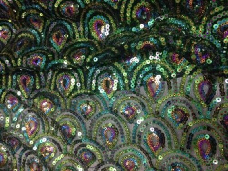 Large Embroidery Sequin Peacock Feather Fabric Lace Applique Green Peacock Wedding Dress