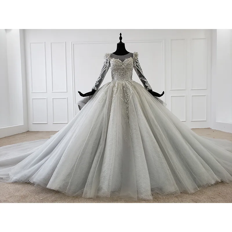 Bgw Ht4316 Luxury Wedding Dress Grey O Neck Lace Up Back Long Grey Wedding Dress Plus Size