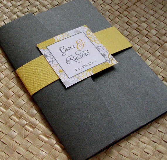 Pocket Fold Wedding Invitations Brooklyn Lemon Yellow Silver Gray Grey Yellow Wedding Invitations