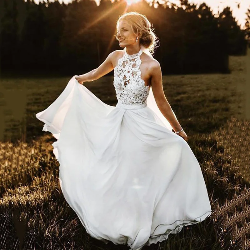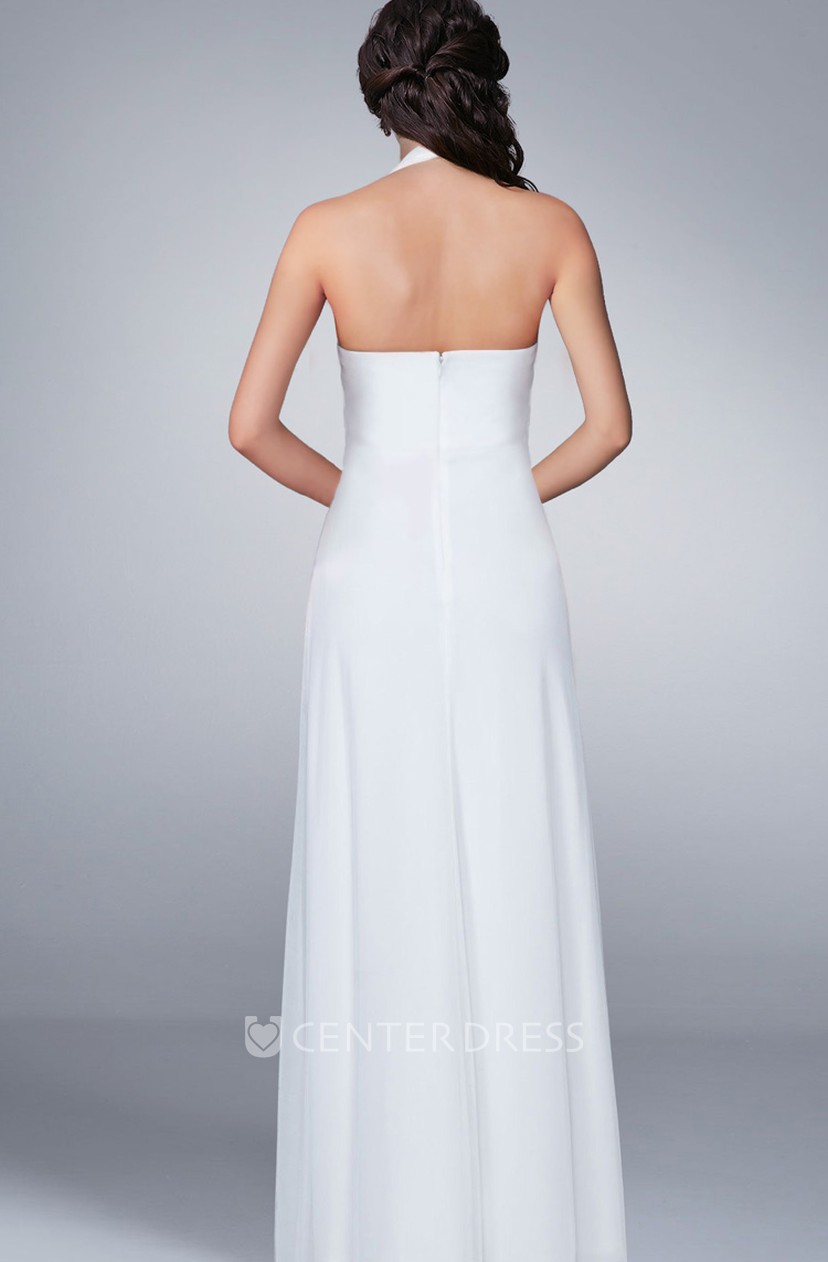 Sheath Column Halter Pleats Sleeveless Long Chiffon Beach Wedding Halter Chiffon Wedding Dress