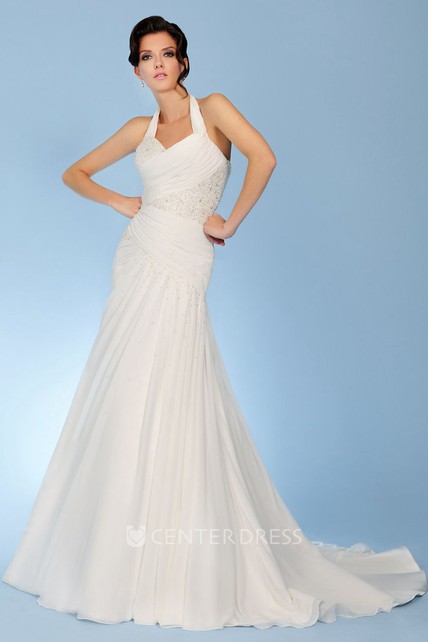 White Lace Beading Bridal Gown Princess Gown Halter Corset Satin Halter Corset Wedding Dress