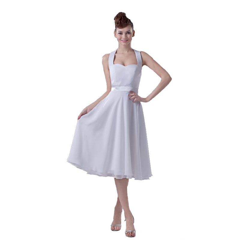 2017 Summer Wedding Dress White Chiffon Halter Neck Knee Length Halter Dresses For Summer Wedding