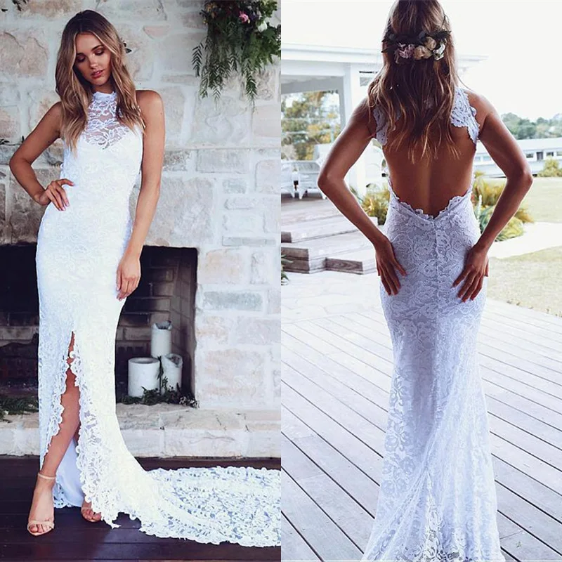 Backlakegirls Sexy Halter Sleeveless Lace Long Evening Dress For Halter Dresses For Wedding
