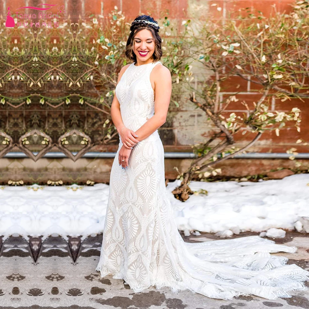 Uniques Lace Mermaid Wedding Dresses Halter Backless Bohemian Bridal Gowns Sweep Train Chic Noivas Zw297 Wedding Dresses Aliexpress Halter Lace Wedding Dress With Sweep Train
