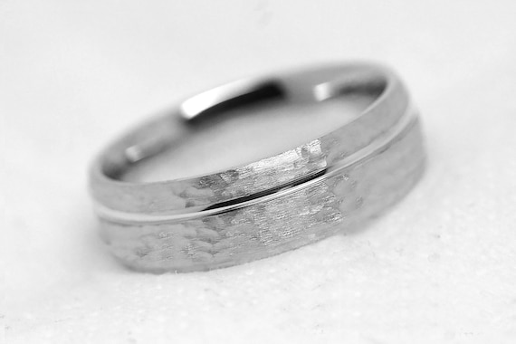 Men S Hammered White Gold Wedding Ring With Polished Edges Hammered Wedding Rings
