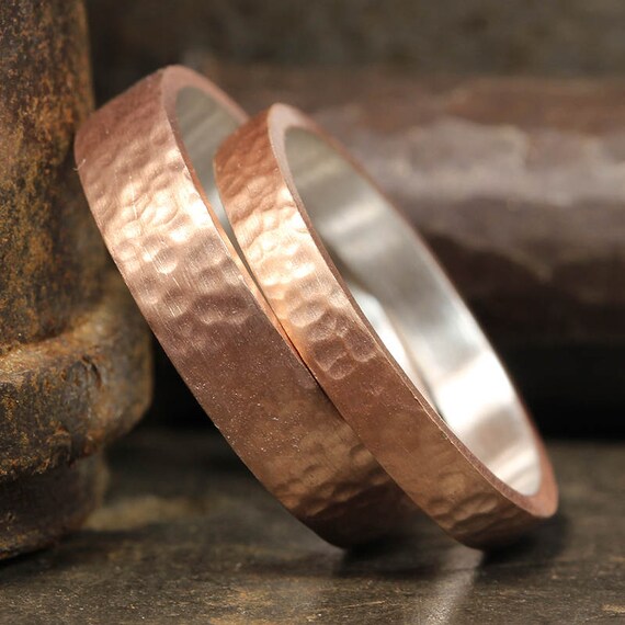 Hand Forged Wedding Ring Set 18k Rose Gold Over 925 Sterling Etsy Hand Forged Wedding Rings