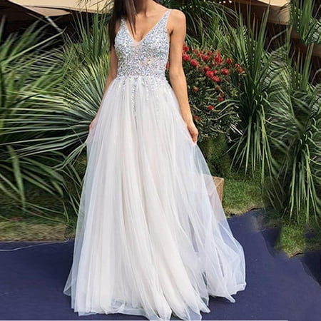 Women Sleeveless V Neck Wedding Dress Elegant Party Evening Slim Maxi Dresses Walmart Com Hand Wash Wedding Dress