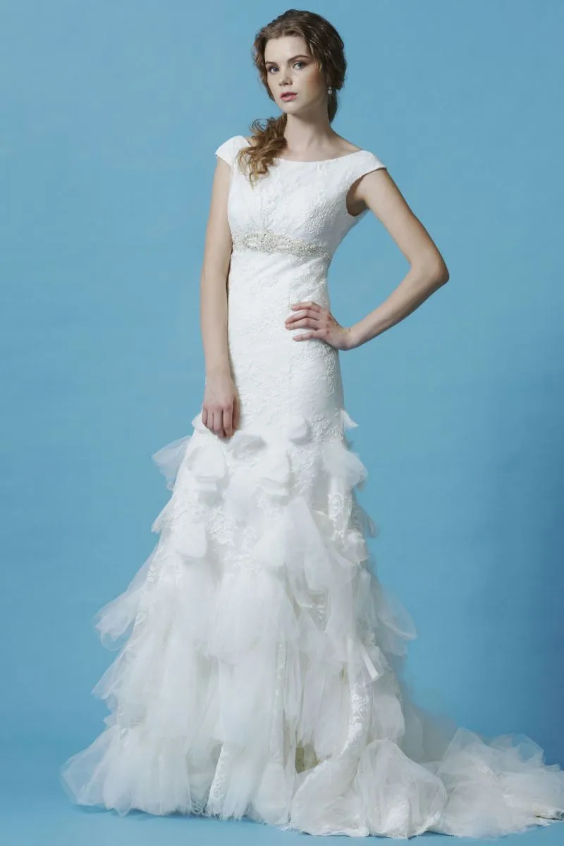 Mon Cheri Tr11978 Hanky Hem Tiered Modest Wedding Dress French Handkerchief Skirt Wedding Dress