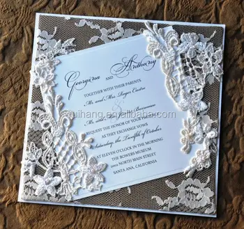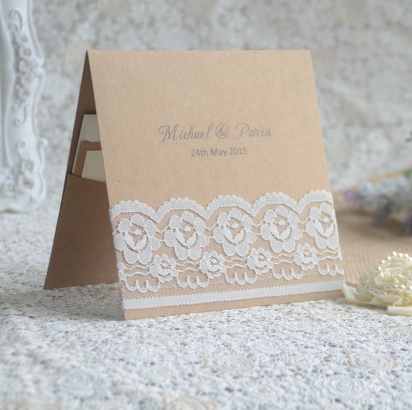 Chic Vintage Flowers Lace Wrapped Wedding Invitations Card With Handmade Lace Wedding Invitations