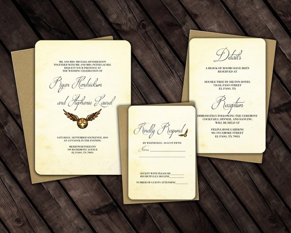 Harry Potter Inspired Wedding Invitation Suite Set Etsy Harry Potter Wedding Invitations
