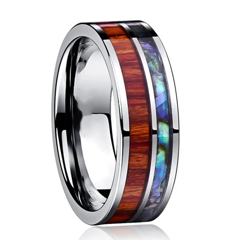 Hawaiian Wood And Abalone Shell Tungsten Carbide Ring Wedding Hawaiian Jewelry Wedding Rings