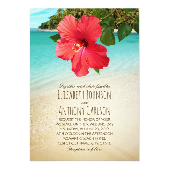 Tropical Hibiscus Hawaiian Beach Themed Wedding Invitation Hawaiian Themed Wedding Invitations