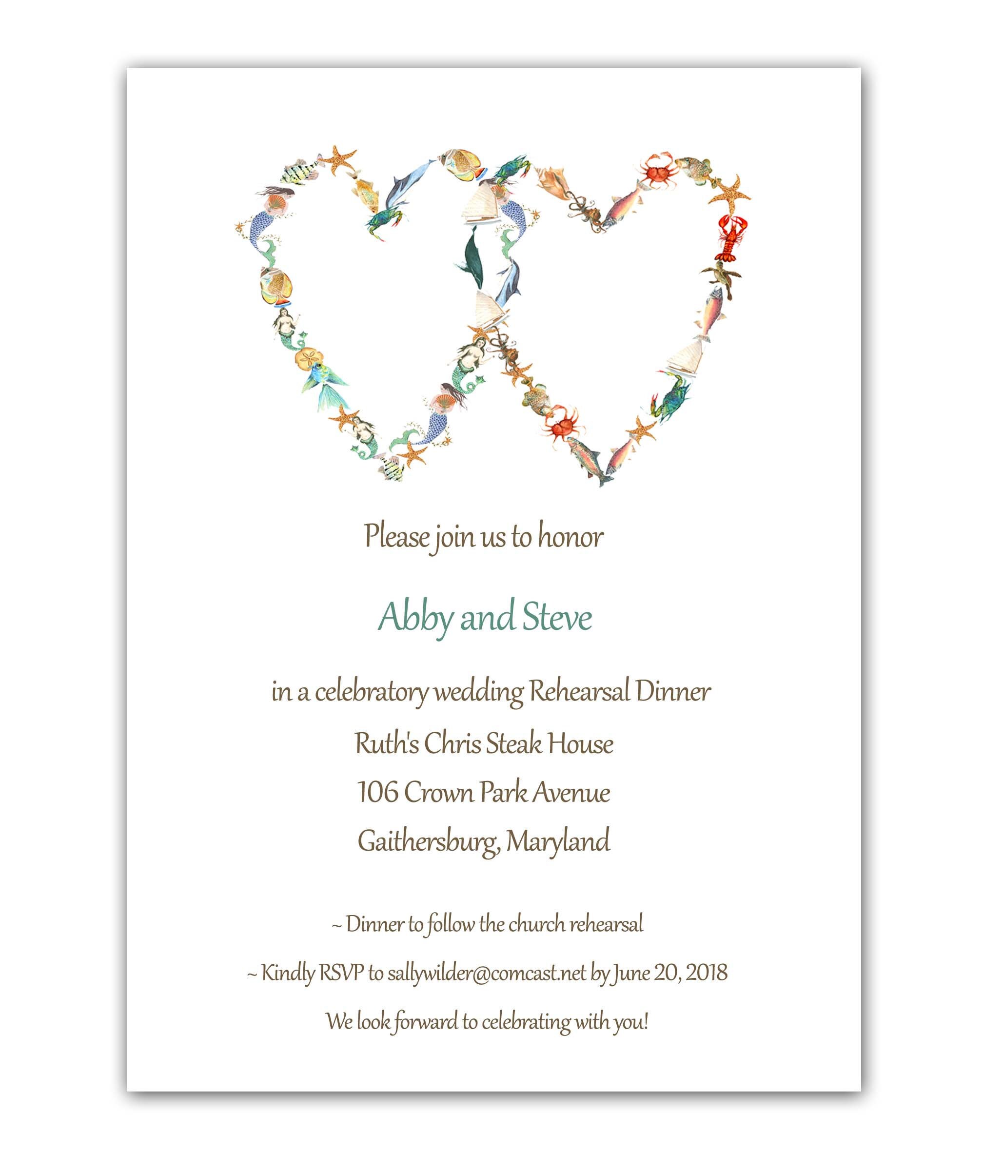 Nautical Hearts Wedding Invitations Coastal Rehearsal Dinner Etsy Heart Wedding Invitations