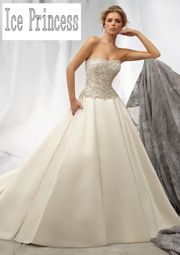 Elegant V Neck Cap Sleeves Satin Wedding Dress Bride Gown Wedding Heavy Satin Wedding Dresses