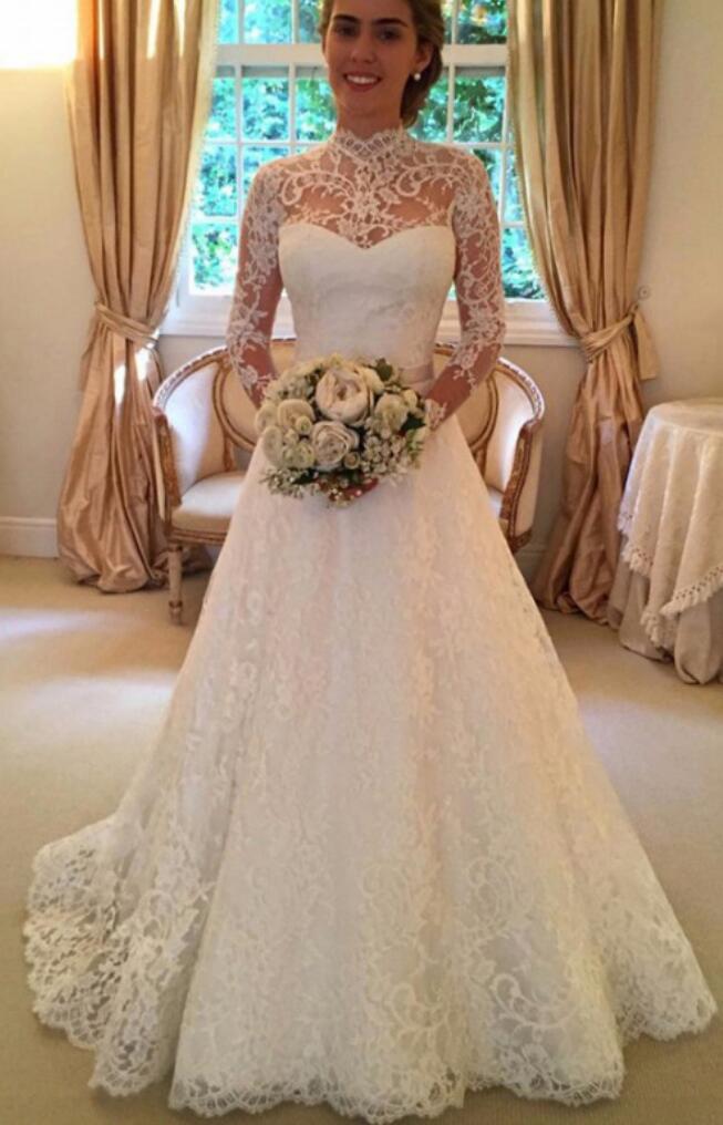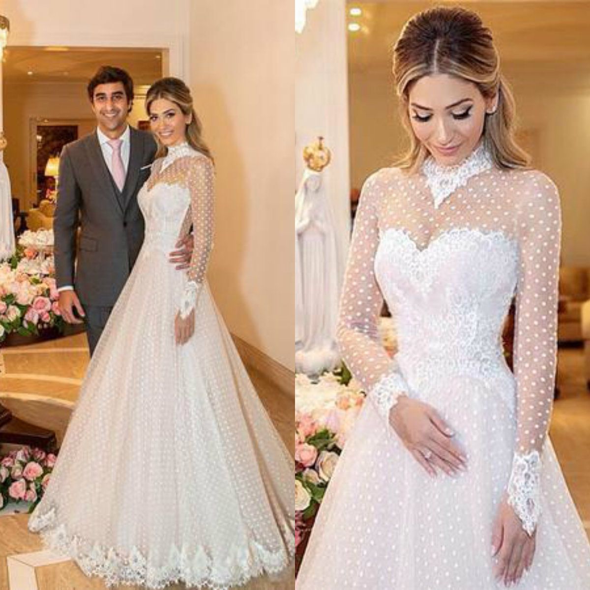 Liyuke J11 Long Sleeve High Collar Wedding Dress Ball Gown High Collar Wedding Dress With Sleeves