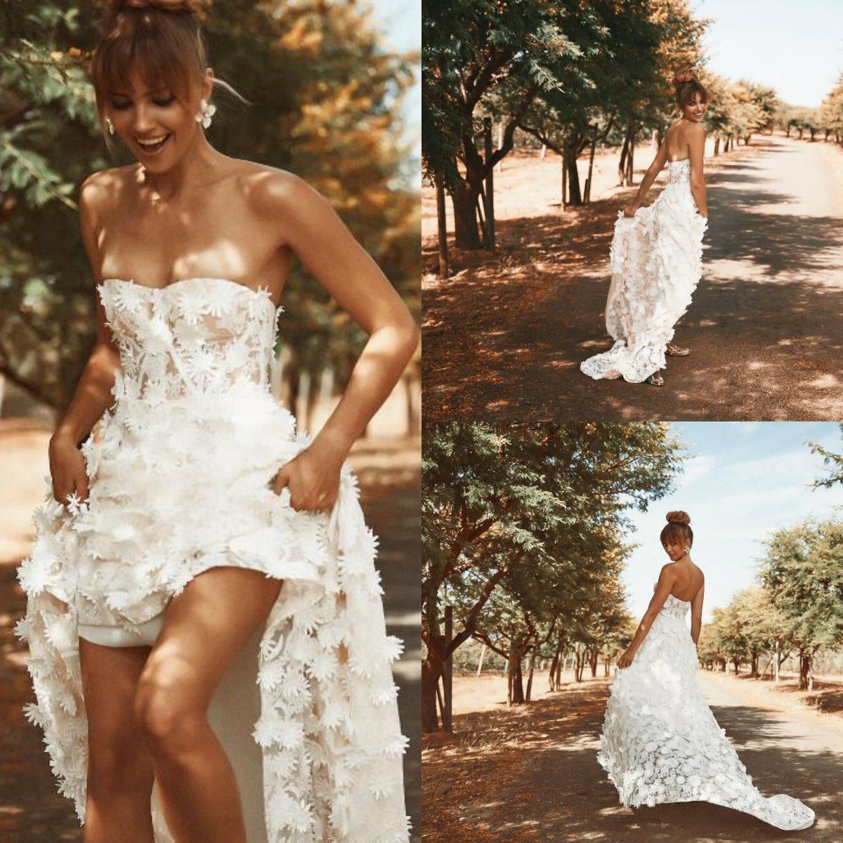 Boho Beach Short Wedding Dresses With Lace High Low Country Bridal High Low Country Wedding Dresses