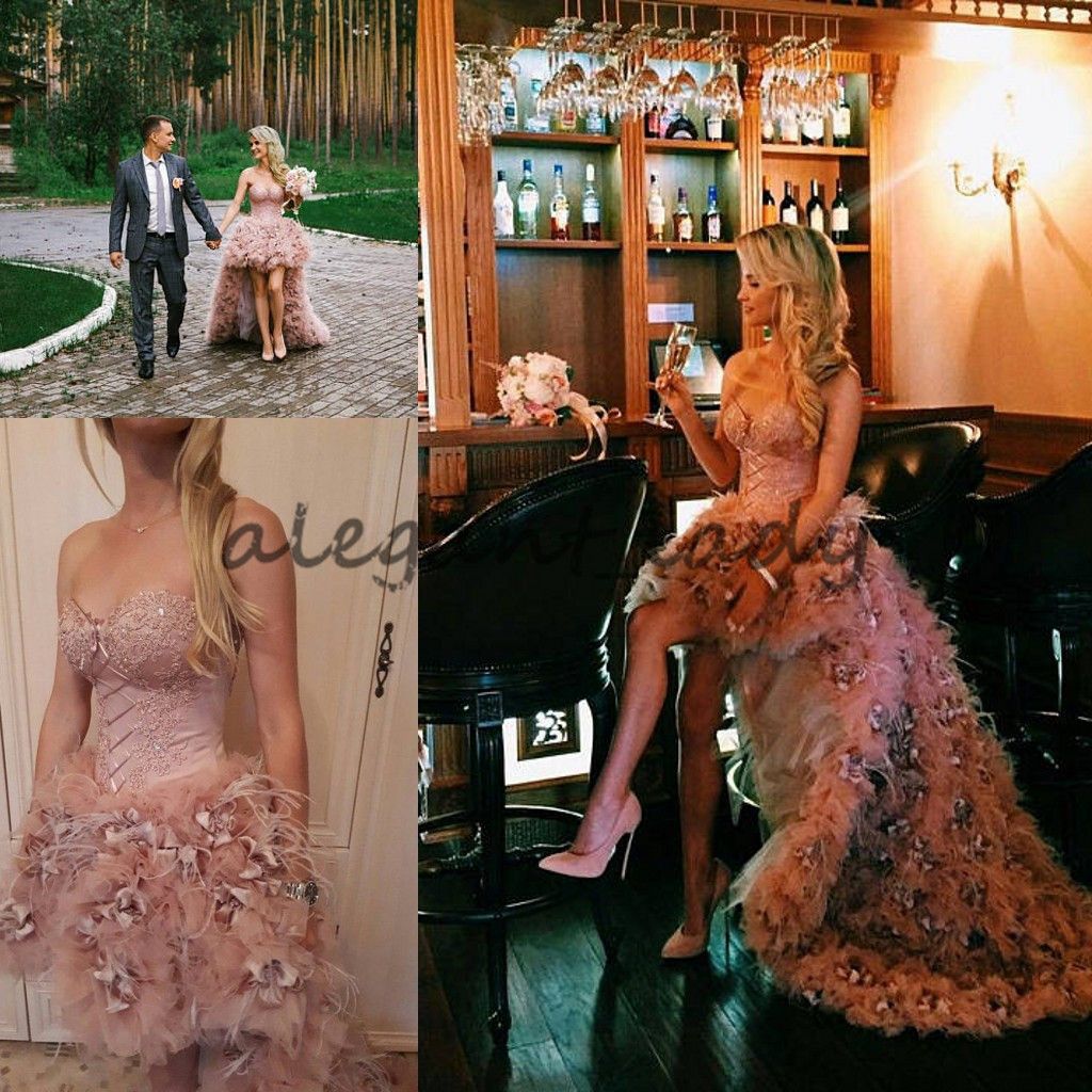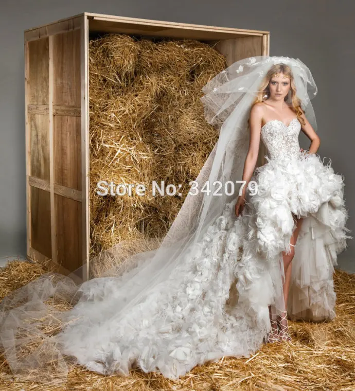 Ph07667 Zuhair Murad Wedding Dresses 2015 High Low Short Front High Low Feather Wedding Dress