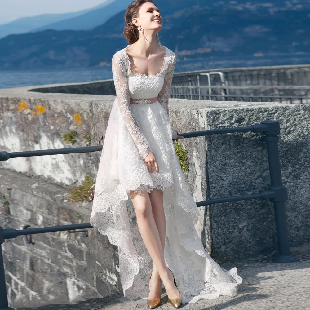 Shop Two Piece Tea Length For Country Outdoor Weddings High Low High Low Lace Wedding Dress With Sleeves