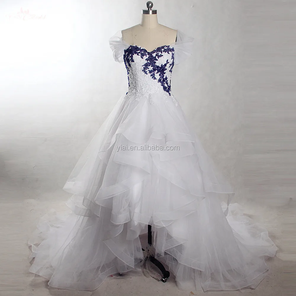 Rsw1395 Off Shoulder Ruffle Skirt High Low Royal Blue And White High Low Ruffle Wedding Dress