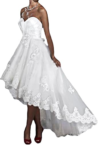 White Ivory High Low Chiffon Beach Wedding Dress Sweetheart Lace High Low Sweetheart Wedding Dress