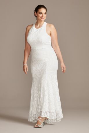 Sequin Pattern High Low Plus Size Sheath Dress David S Bridal High Low Wedding Dress Davids Bridal
