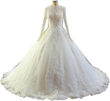 Ball Gown Wedding Dress For Your Wedding Ceremony Kemedress High Neck Long Sleeve Ball Gown Wedding Dress