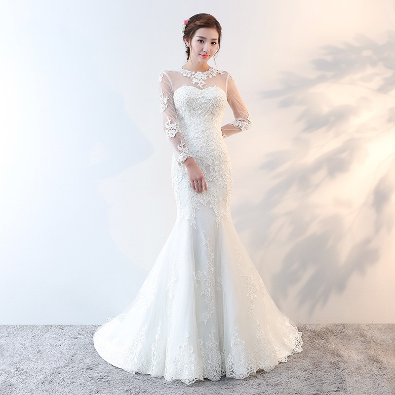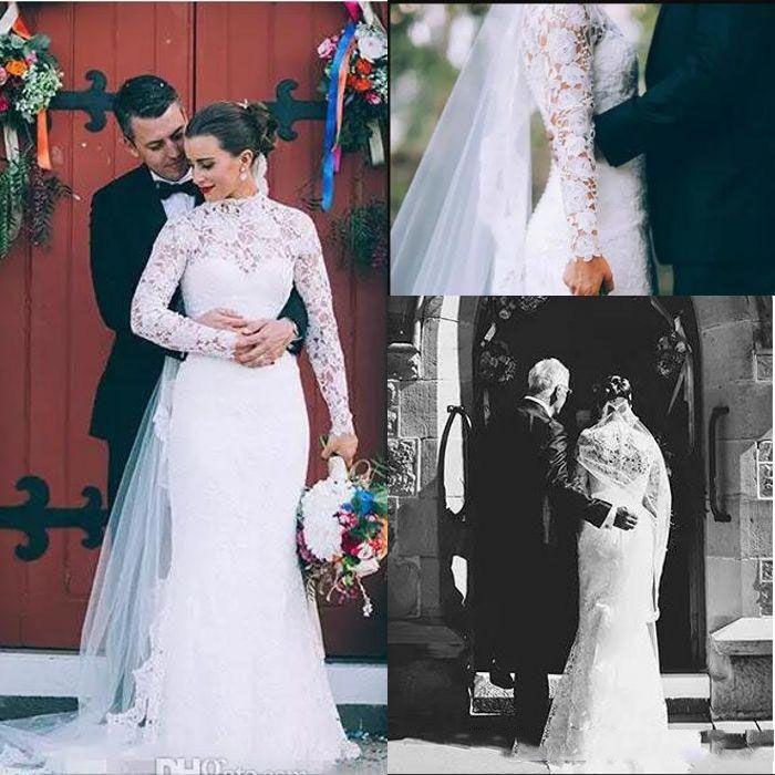 Charming High Neck Lace Mermaid Wedding Dress With Long Sleeves High Neck Long Sleeve Mermaid Wedding Dress