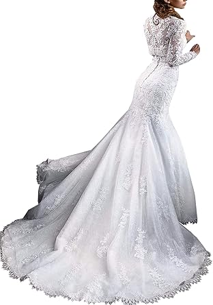 Trendy Mermaid Sexy Wedding Dresses Long Sleeve High Neck Open High Neck Long Sleeve Mermaid Wedding Dress
