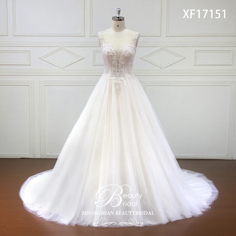 High Quality Illusion Round Neckline Aline Shape Wedding Dress High Quality Wedding Dresses
