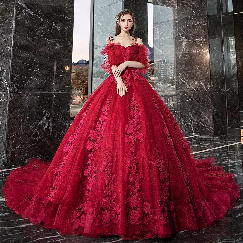 New Red Muslim Wedding Dress Long Sleeve Bridal Ball Gown With Hijab Wedding Dress Red