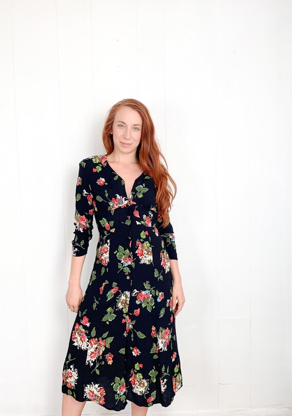 Vintage Dress Long Sleeve Dress Floral Boho Hippie Etsy Hippie Wedding Guest Dresses