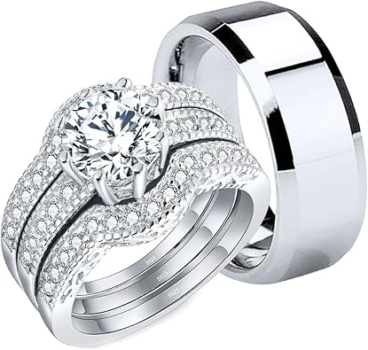 His Queen Her King Diamond Couple Rings Wedding Rings Men Women His And Hers Sterling Silver Wedding Rings