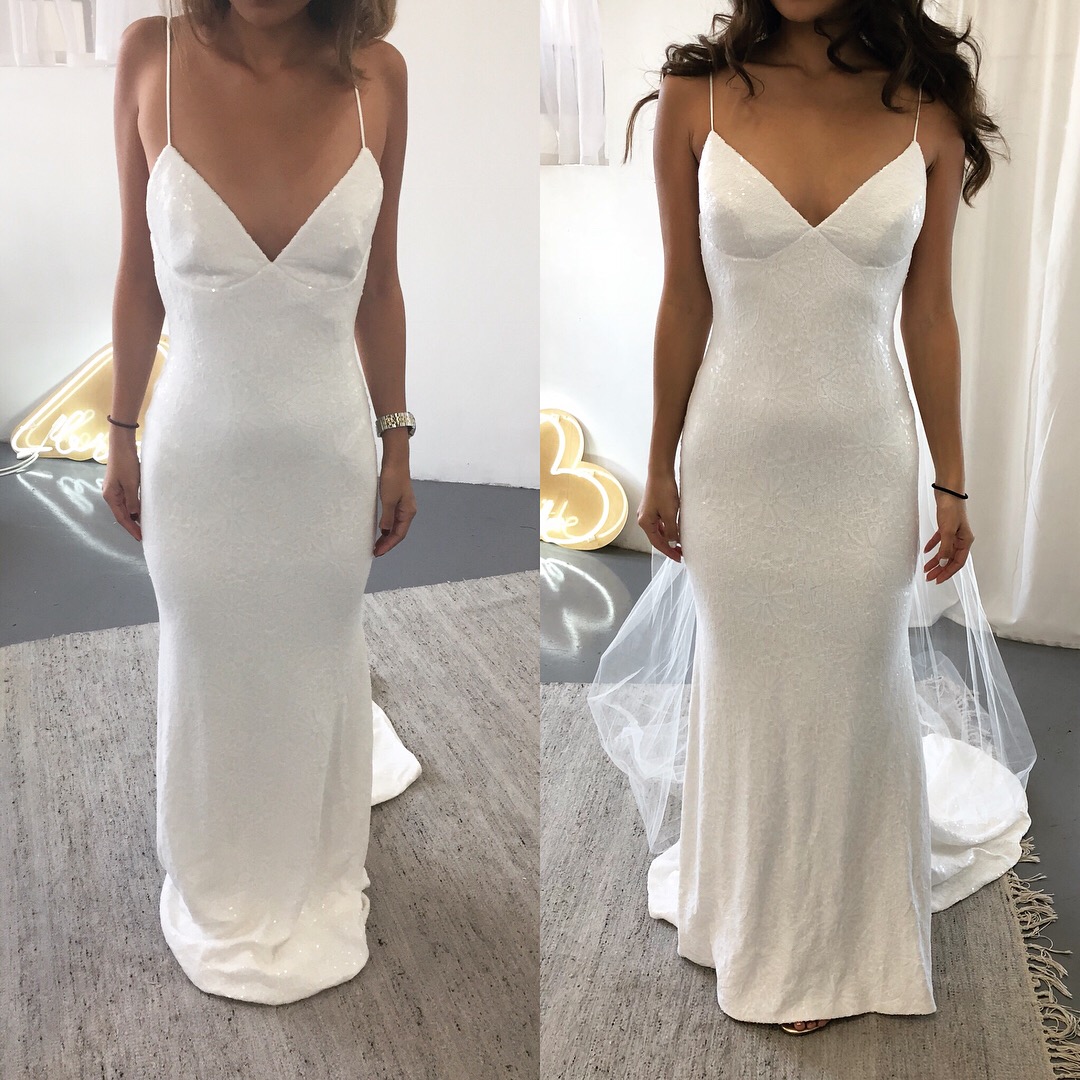 Crepe Sheath Dress Bustle Options Crepe Wedding Dress Wedding How To Bustle A Crepe Wedding Dress