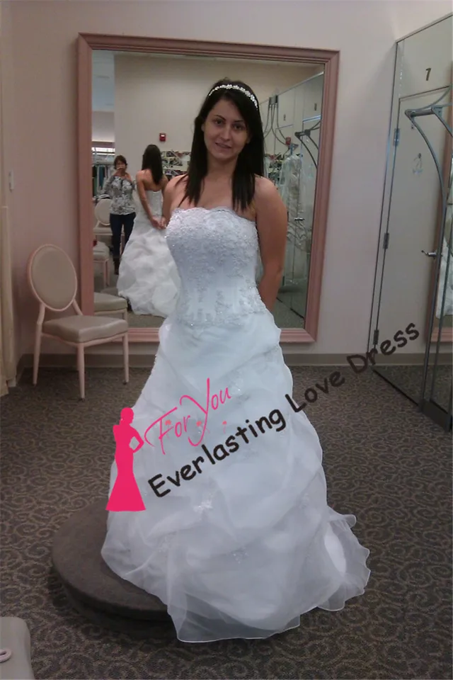 Forever Strapless Applique With Hand Beading Pin Up Organza Wedding Dresses Sweep Train Vestido Branco Crystals Bridal Dresses Applique Fabric Appliques Rhinestonedress Up Prom Queen Aliexpress How To Pin Up Wedding Dress Train