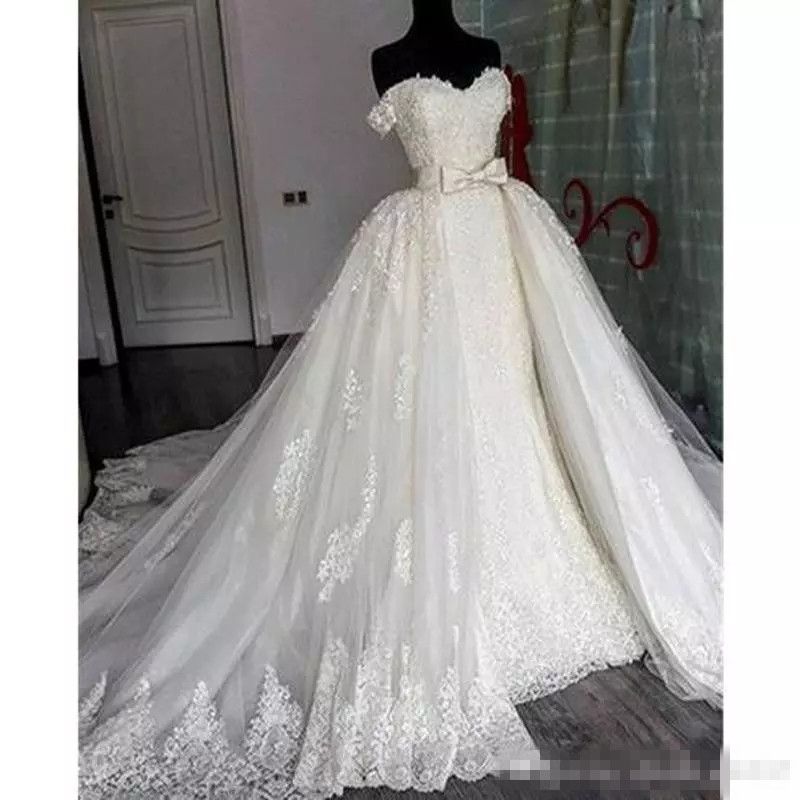 Aries Tuttle White Ivory Lace Appliques Bow Wedding Dress Mermaid How To Store Wedding Dress With Train