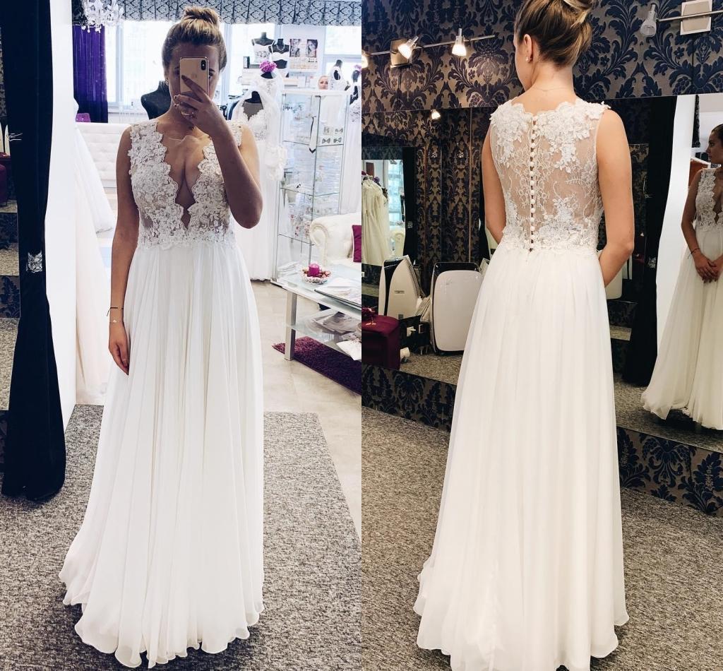 Sophisticated Column Dress With Illusion Bodice And Lace Applique Illusion Bodice Wedding Dress