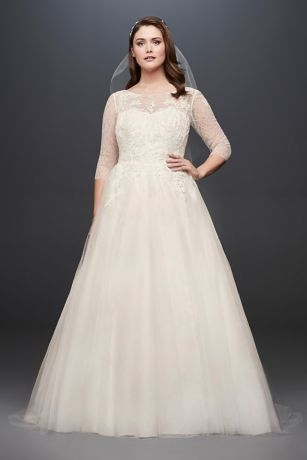 Tulle Plus Size Wedding Dress With Illusion Bodice David S Bridal Illusion Bodice Wedding Dress