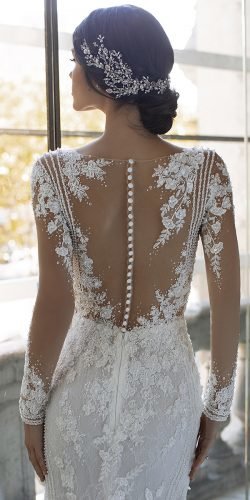 Wedding Dress Long Sleeves Vestidos De Novia Illusion Lace Illusion Button Back Wedding Dress