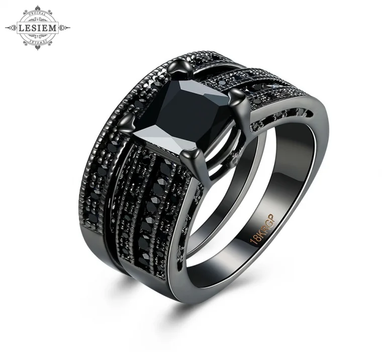 Black Blue Square Crystal Zircon Ring Set Black Gold Color Imitation Gemstone Engagement Jewelry Wedding Rings For Women Wedding Rings For Women Wedding Ringsrings For Women Aliexpress Imitation Wedding Ring Sets