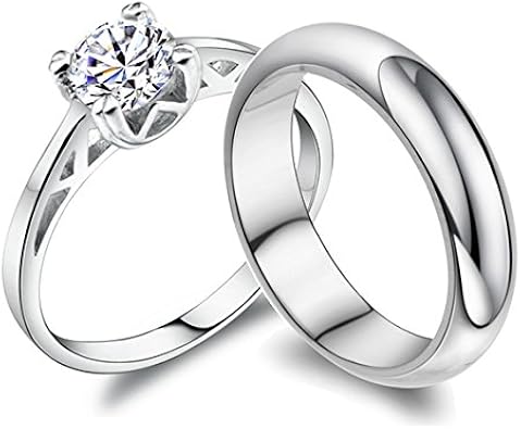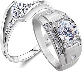 Personalized His Hers 0 6 Carat Imitation Diamond Silver Engagement Rings Set Of 2 Amazon Co Uk Clothing Imitation Wedding Ring Sets