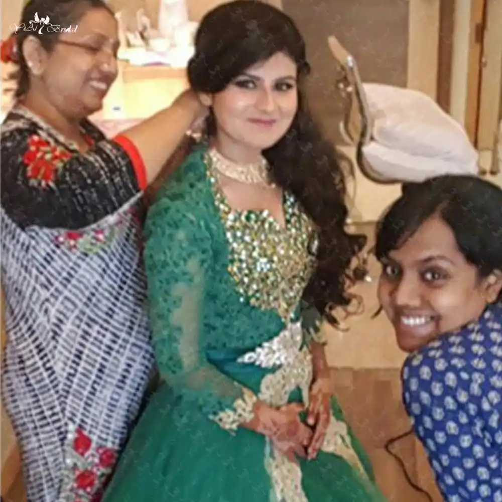 Rse890 Green And Gold Colored Long Sleeves Ball Gown Indian Indian Wedding Dresses Green