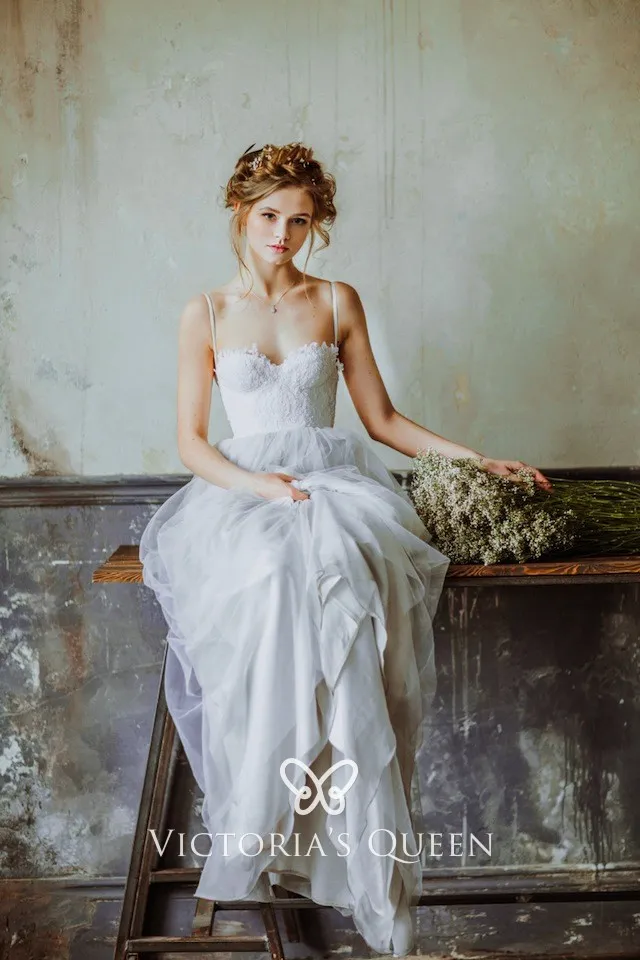 2018 New Informal Ivory Lace Chiffon Summer Beach Wedding Dresses Informal Lace Wedding Dress