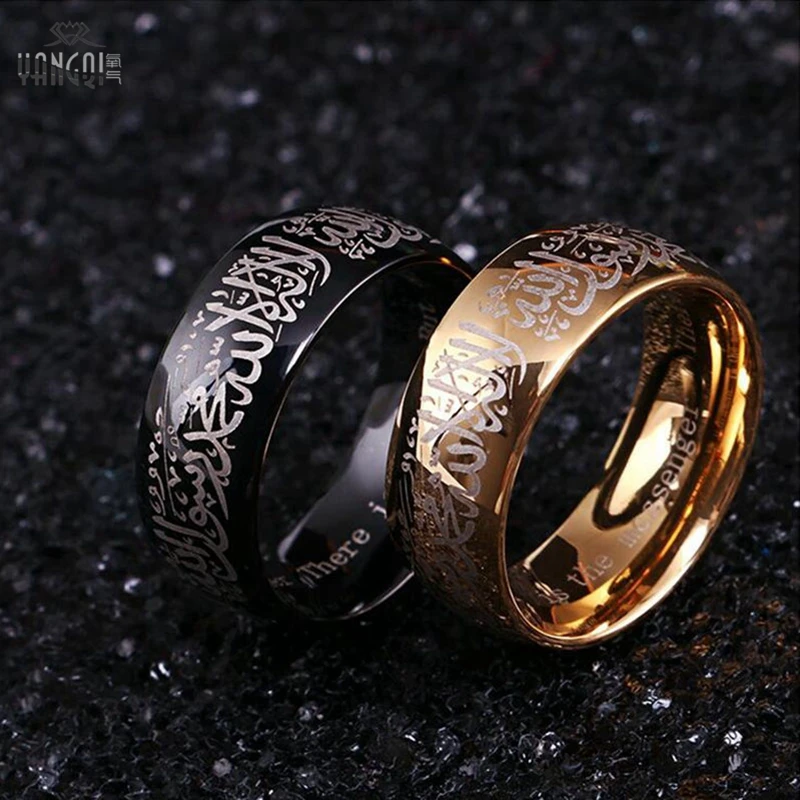 Gold Rings For Men Luxury Zirconia Allah Islamic Wedding Bands Islamic Wedding Rings