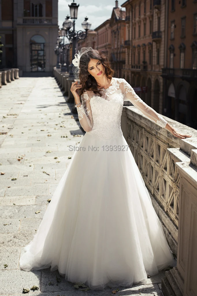 White Lace Wedding Dress 2015 Long Sleeves A Line Stunning Organza Italian Style Wedding Dresses