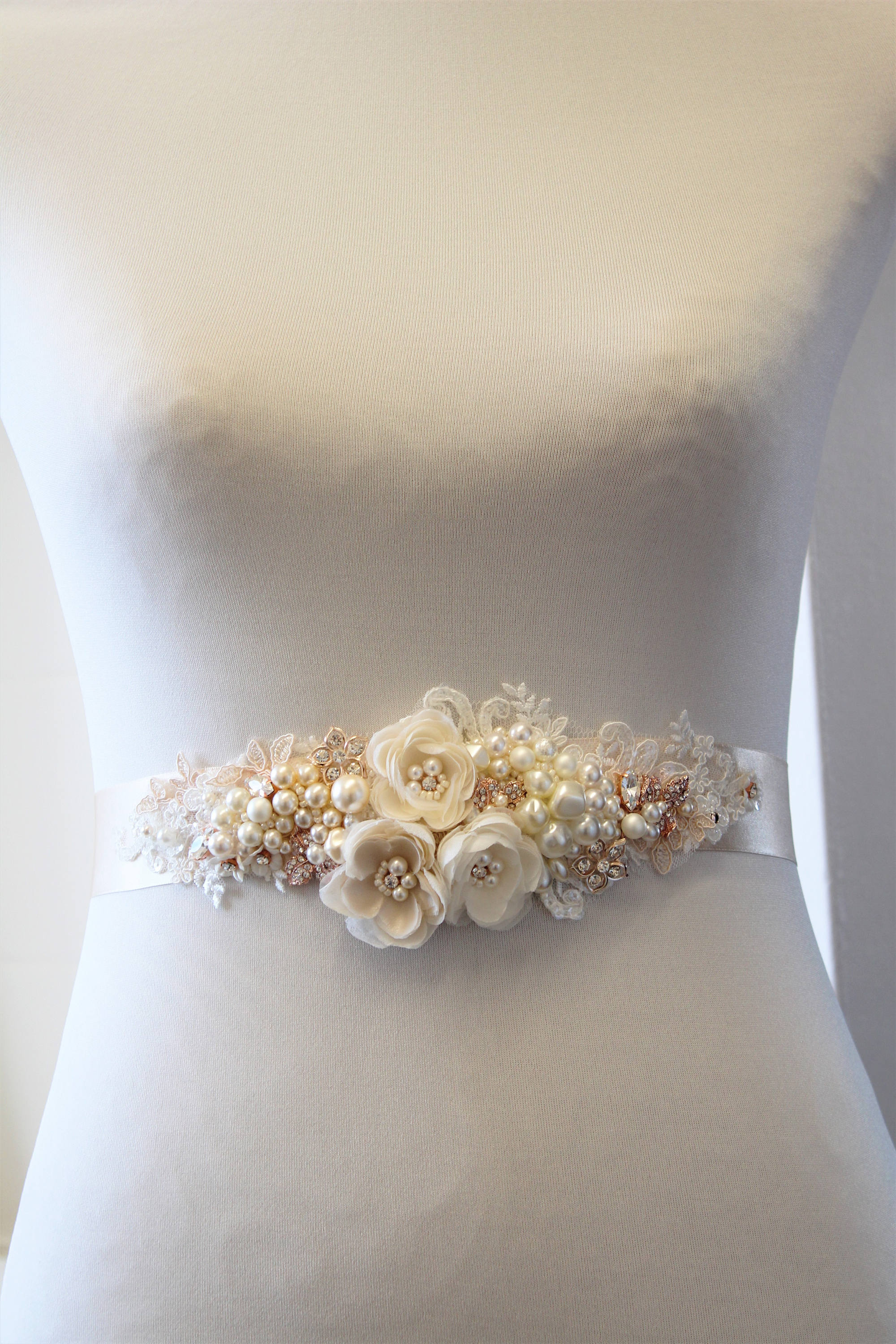 Rose Gold Bridal Dress Belt Wedding Sash Floral Belt Etsy Ivory Champagne Wedding Dress With Bridesmaids