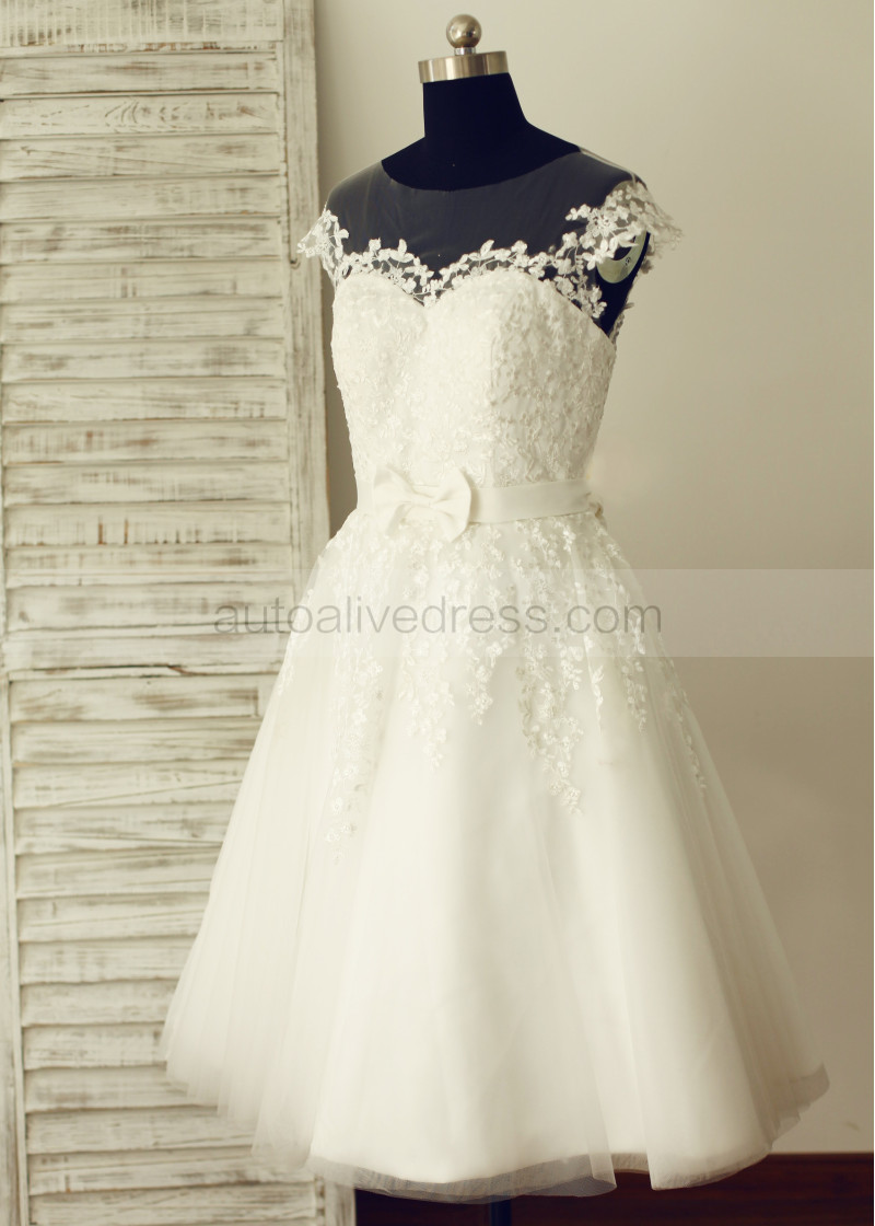 Half Sleeve Tea Length Ivory Lace Wedding Dress Vq Ivory Lace Tea Length Wedding Dress