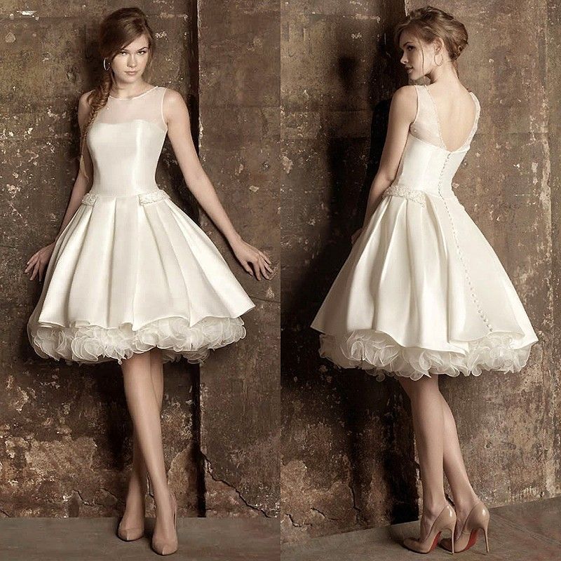 Affordable Ivory Satin See Through Bridal Wedding Dresses 2020 Ivory Wedding Dresses Short
