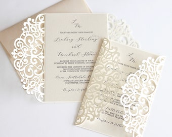 Cheap Laser Cut Wedding Invitations Pocket Elegant Wedding Ivory Wedding Invites