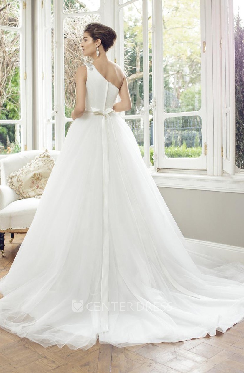 Ball Gown Sleeveless One Shoulder Jeweled Tulle Wedding Dress With Jeweled Ball Gown Wedding Dresses