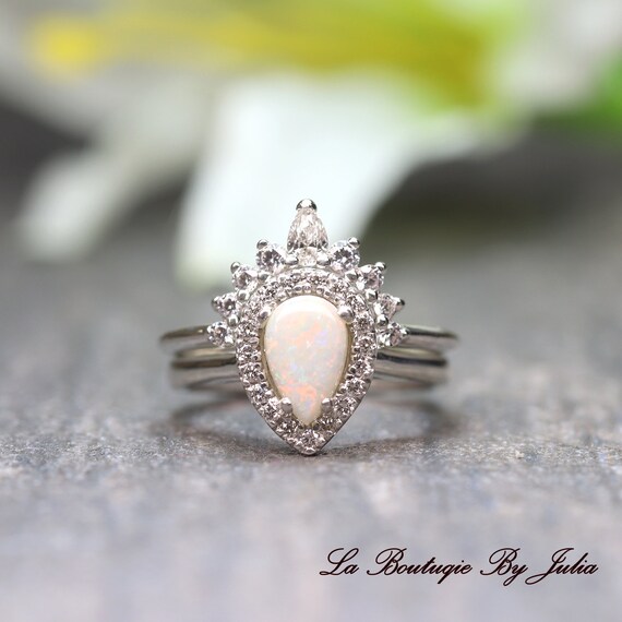 Genuine Opal Bridal Ring Set Pear Shaped Opal Engagement Ring Etsy Julia Jewelry Wedding Ring